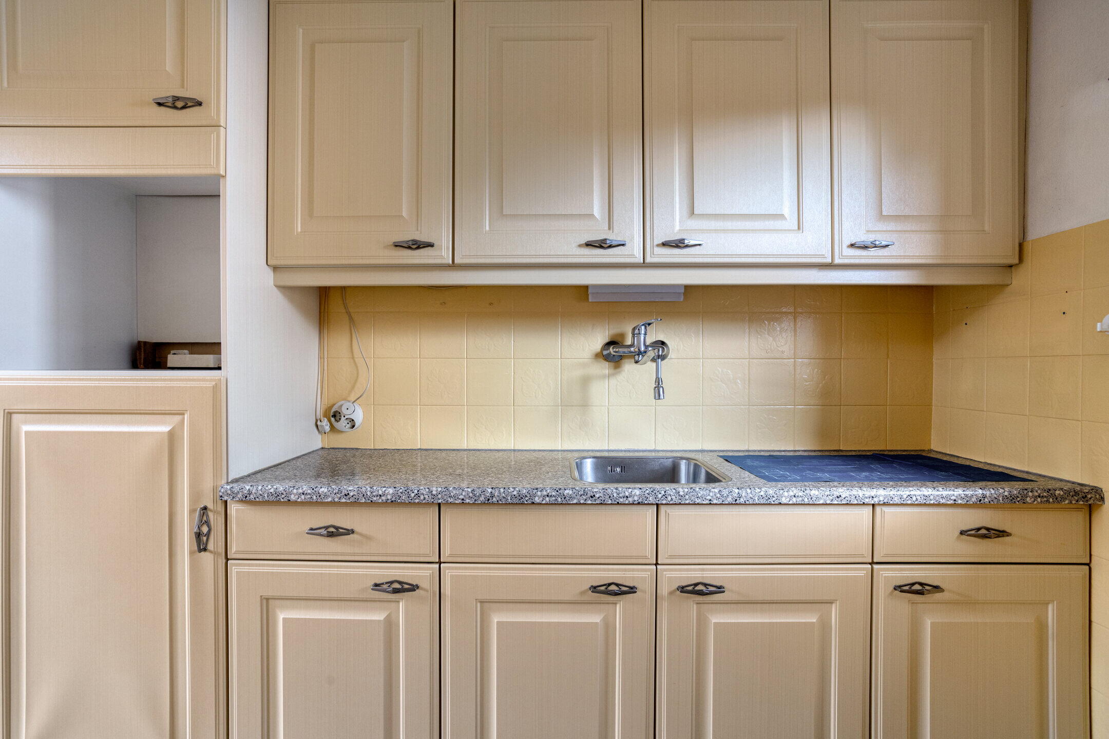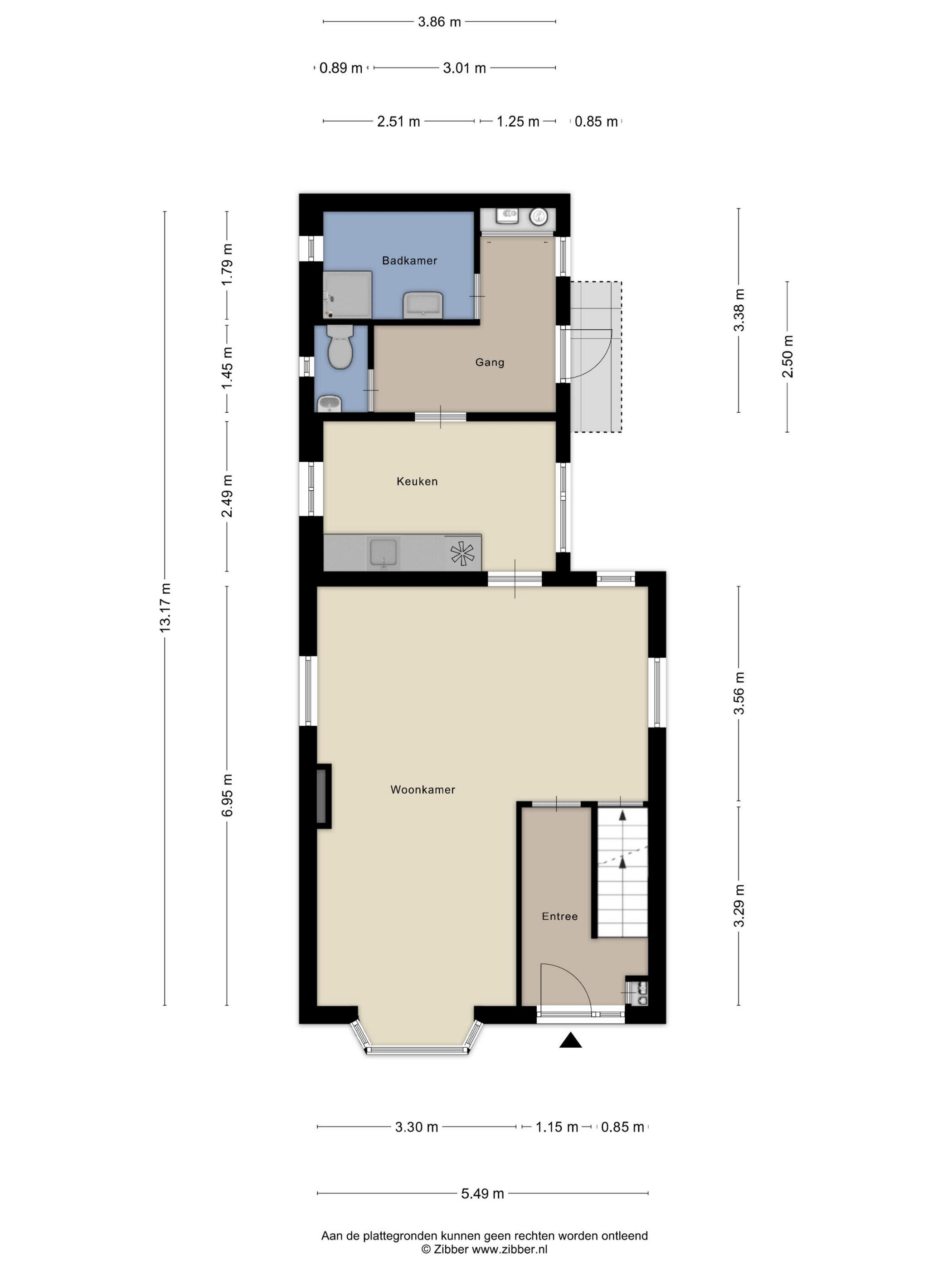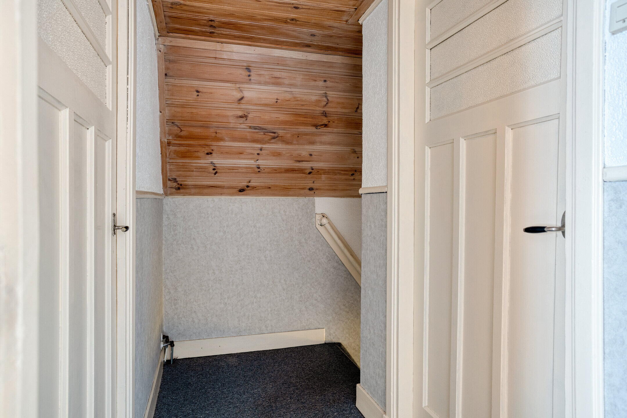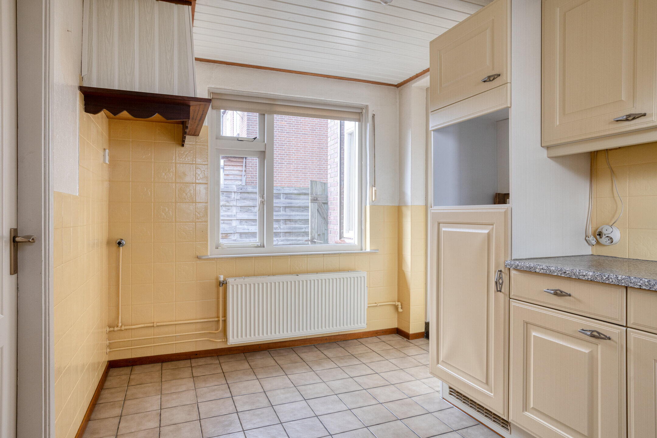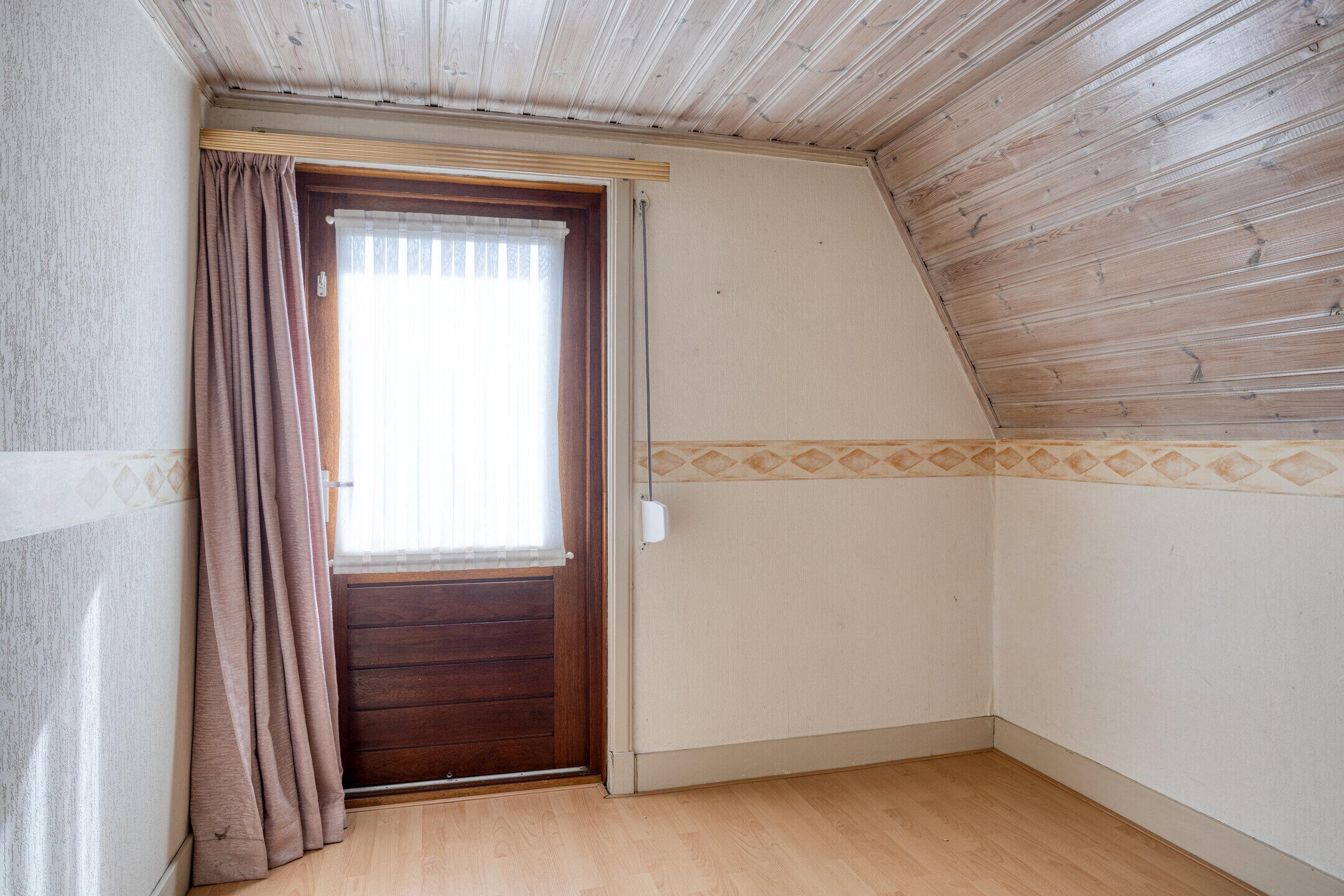 De gesloten keuken is eenvoudig uitgevoerd, maar biedt volop mogelijkheden voor een eigentijdse invulling. Via het achterportaal bereik je de doucheruimte met douche en vaste wastafel, het separaat toilet en de cv-/bergruimte.