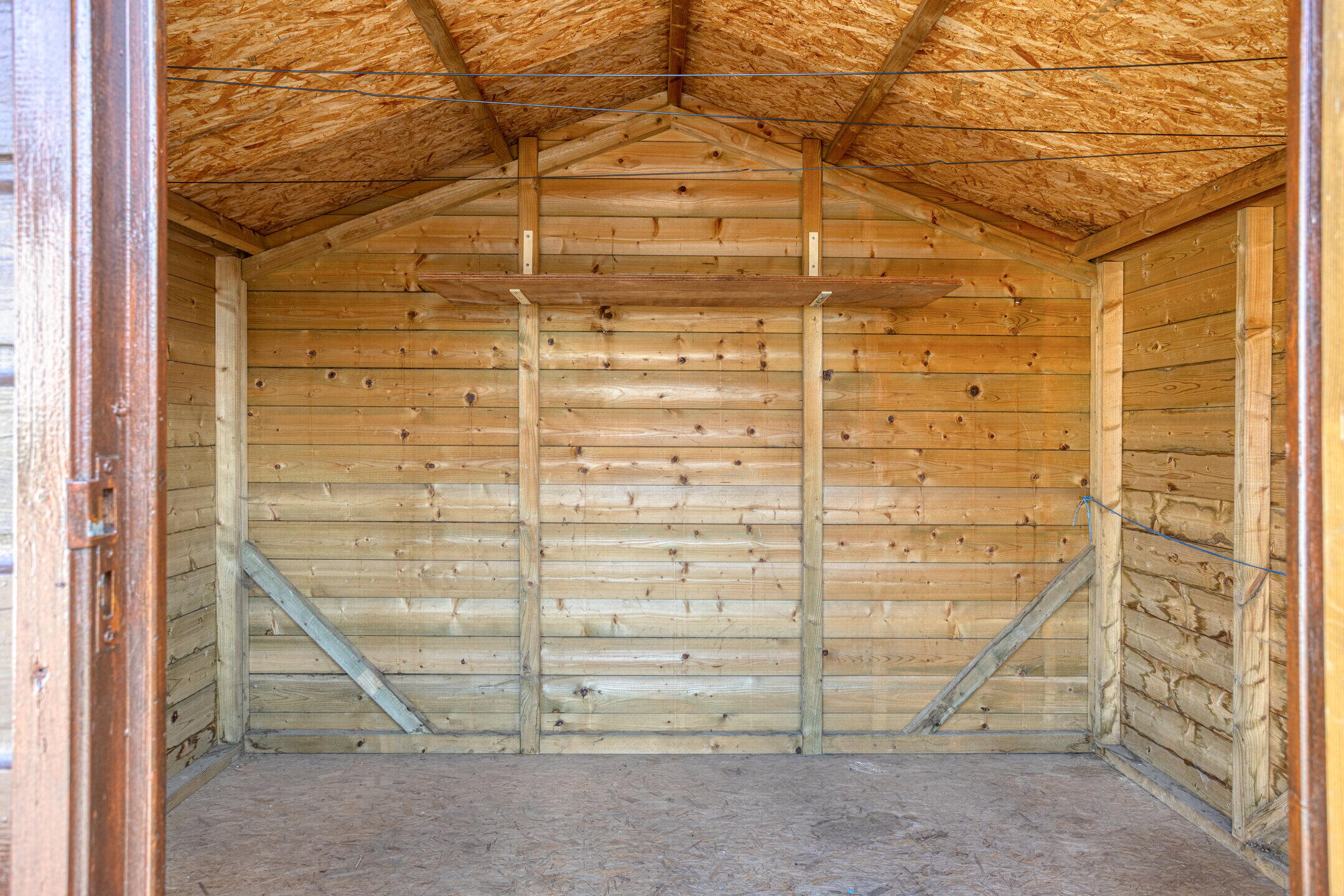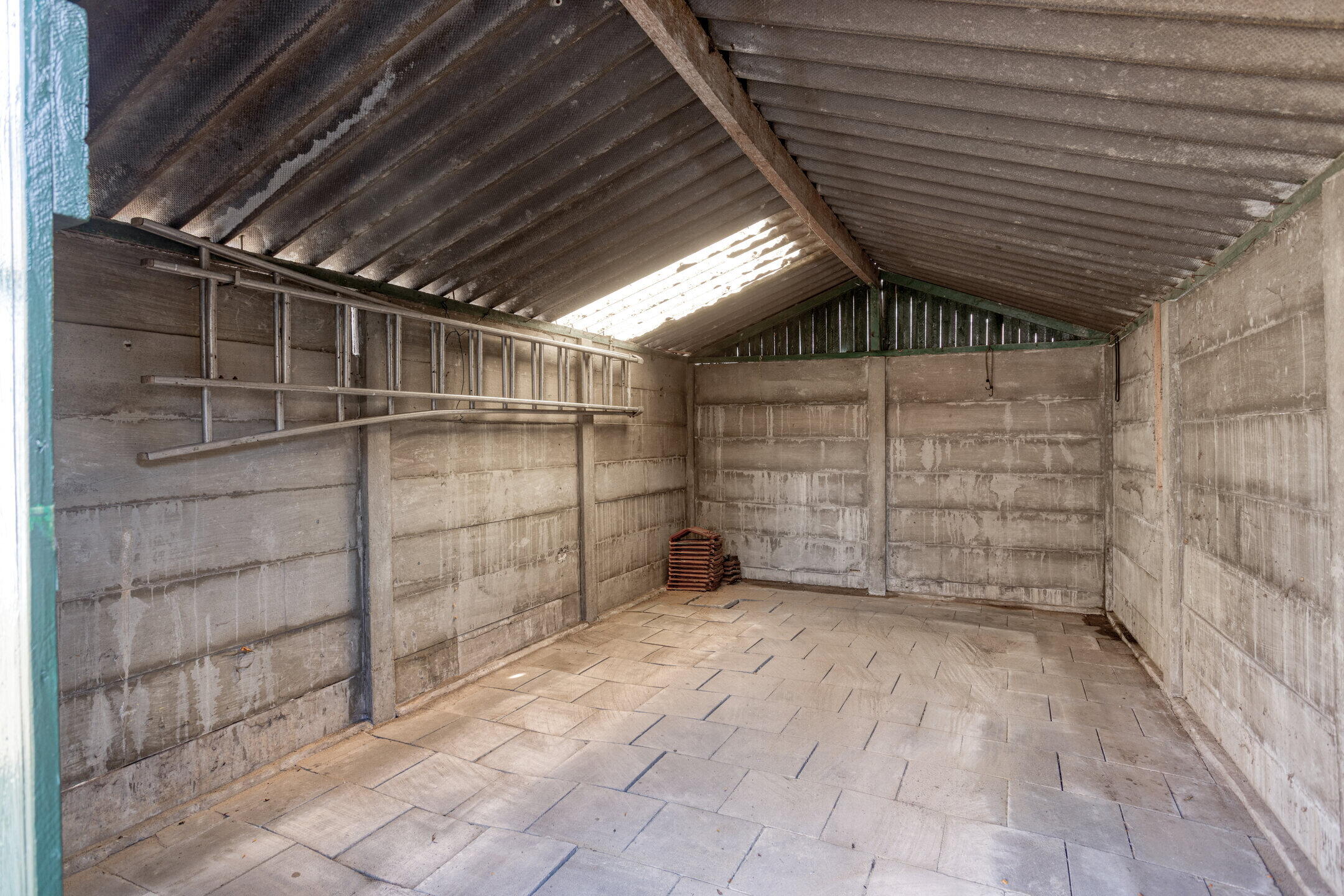 Achter op het perceel bevindt zich een houten tuinhuis. Daarnaast zijn er meerdere praktische bijgebouwen aanwezig, waaronder een stenen garage en een separate schuur. Deze ruimtes bieden volop mogelijkheden voor opslag, het uitoefenen van hobby’s of het stallen van fietsen en gereedschap.